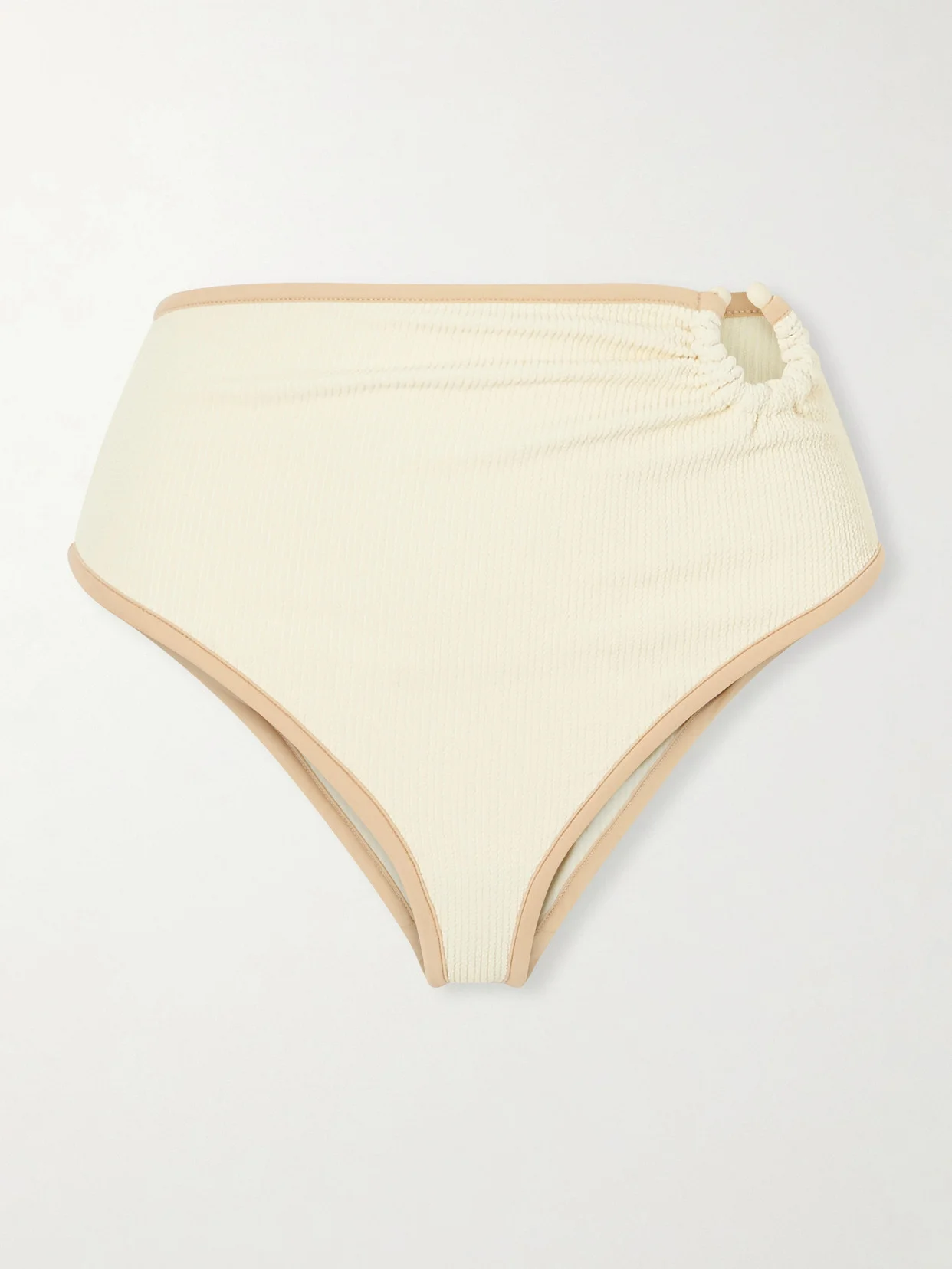 Johanna Ortiz' 'Susurro Del Agua' bikini briefs are defined by the beaded ring at the high waist. Made from recycled-seersucker, they're detailed with contrast trims and have high-cut legs that elongate your frame. Wear yours with the matching top in our edit.
