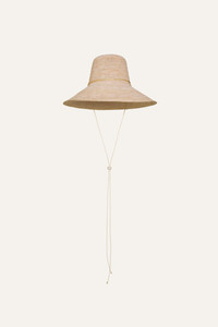 Handcrafted from 100% natural Paja Toquilla, this hat brings a laid-back yet refined look to any outfit. The classic, wide brim and adjustable ties add both style and practicality, perfect for sun-filled days by the beach or casual outings. Product Details: Made in collaboration with Artesano Closure: Put On With Drawstring Regulation Composition: 100% Natural Fiber - Paja Toquilla Fabrication: Natural Fiber (Paja Toquilla) Hat Color: Antique Ecru Made in Ecuador
