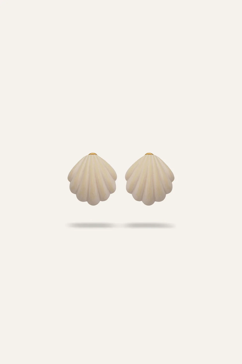 A pair of seashell-inspired stud earrings, crafted to capture the rhythmic beauty of the ocean. Their delicate design makes them a versatile accessory, transitioning effortlessly from sunlit beach days to moonlit evenings. Product Details: Closure: Post Fastening With Omega Clip Composition: 95% Metacrilato, 5% Copper Alloys Fabrication: Metacrilato & Copper Alloys Earrings Color: Antique Ecru Made in Italy Dimensions: Height 1.5'', Width 1.4''