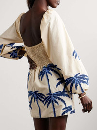Blending heritage techniques with contemporary design. Johanna Ortiz's creations are expertly crafted in her hometown of Cali, Colombia, by a talented team of skilled craftswomen. This ‘Power of the Sea’ mini dress is made from lightweight cotton-blend voile embroidered with colorful palm trees and has a small cutout and puffed sleeves. Size & Fit - Fits true to size, take your normal size - Designed for a slim fit with oversized sleeves - Partially elasticated at the waist for a flexible fit - Lightweight, non-stretchy fabric - Model is 180cm/ 5'11" and is wearing a US 2 Details & Care - Ecru cotton-blend voile - Slips on - 85% cotton, 10% polyester, 5% polyamide - Dry clean
