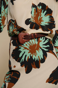 This slim leather belt is defined by its sculptural buckle and textured loop detailing. Minimal yet impactful, it’s designed to add subtle structure and sophistication to both everyday and elevated looks. Crafted from INVERSA™ Silverfin, which transforms ecological harm into elegant materials that restore nature, these belts add a versatile accent that balances refinement with artisanal edge. Product Details: Closure: Front Buckle Composition: 90% Cow Leather, 10% Inversa™ Silverfin Fabrication: Leather Belt Color: Dark Chocolate Made in Colombia Dimensions: Width: 0.91'', Buckle: Length: 2.76'', Height: 2.76''