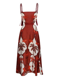 printed maxi dress Highlights - Dark red - Rear tie fastening - Concealed rear zip fastening - Two braided shoulder straps - Open back Imported Composition Lining: Viscose 100% Outer: Linen/Flax 100%