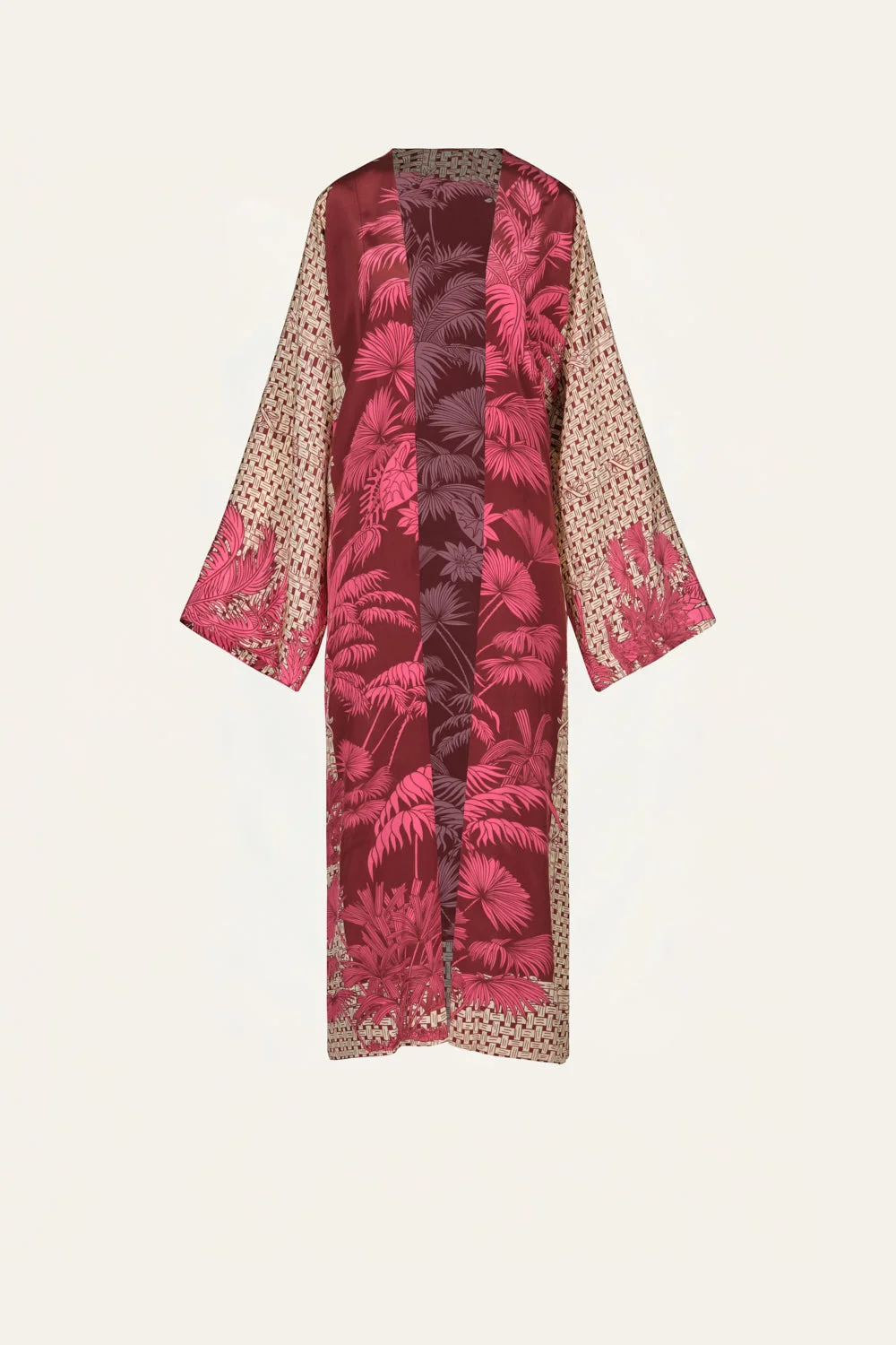 A silk kimono cut in a relaxed silhouette featuring one of Johanna Ortiz’s signature tropical prints. Its fluid design makes it ideal for layering over the matching dress or styling with solid separates for an effortless statement look. Size and Fit: Boxy fit. Please refer to our size chart for detailed guidance. Product Details: Closure: Hold On Composition: 100% Silk Fabrication: Washed Cdc Color: Ecru/Pink Made in Colombia Dimensions: Length 39.37''