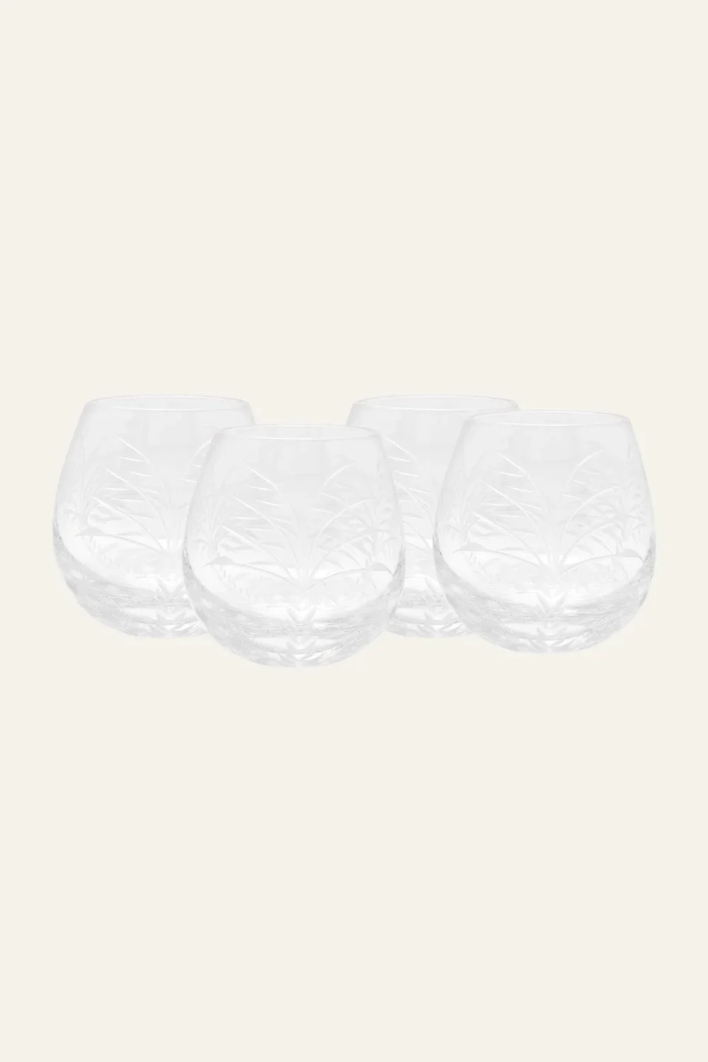 The "Casa Collection" reintroduces the fabulous collaboration with Miami-based home decor brand Eledu. These globally sourced, heavy glass tumblers feature the iconic JO palm tree, meticulously etched using a diamond etching technique. This process ensures aesthetic beauty and durability, making them safe for machine washing. Product Details: Composition: 100% Glass Fabrication: Glass Tumblers Set Color: Transparent Made in China Dimensions: Length 3.94'', Width 3.15''
