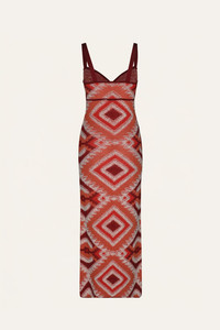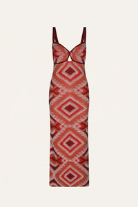 Knitted cotton dress with thin straps, a front keyhole detail, and a body-skimming silhouette. Featuring a geometric pattern throughout, this piece blends texture and structure in a statement JO design. Size and Fit: - True to size. - Please refer to our size chart for detailed guidance. Product Details: Closure: Slip On Composition: 100% Pima Cotton Fabrication: Pima Cotton Color: Salmon Made in Colombia Dimensions: Length 36.22''