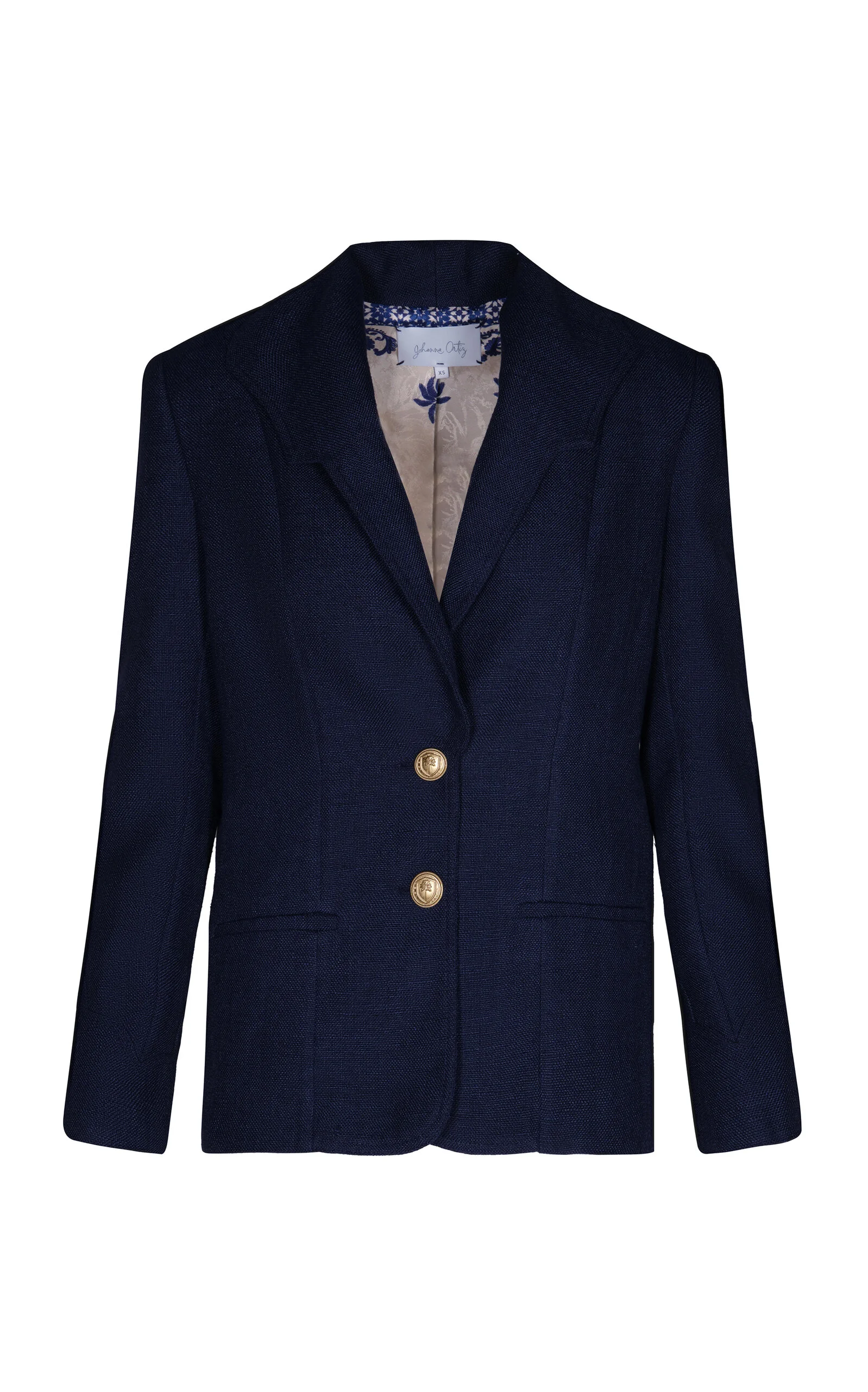 PRODUCT DETAILS - Long sleeve, button front, relaxed fit - Slip on - Unlined - Composition: 100% Linen - Color: navy - Dry clean only - Spring/Summer '25