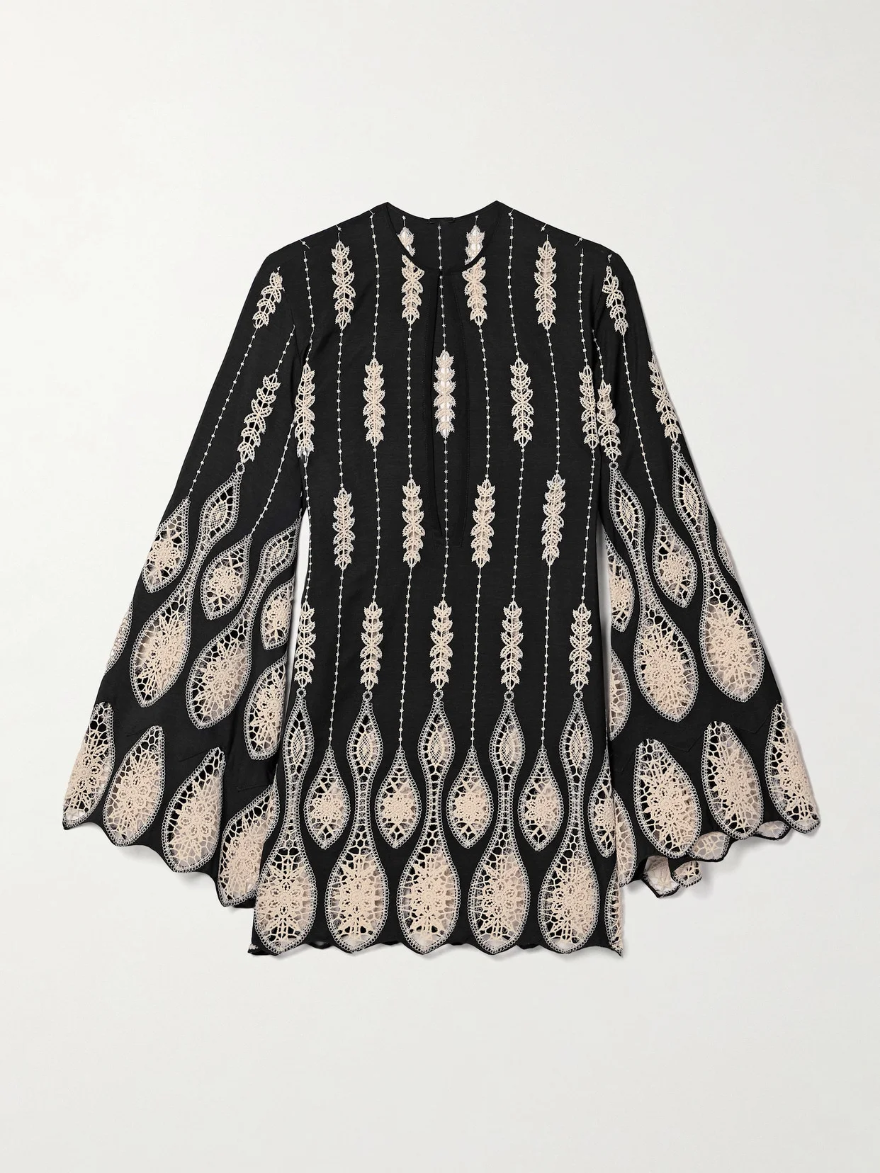 Johanna Ortiz's 'Vision Seeking' mini dress has an unlined construction and breezy crocheted trims, making it a chic choice for a swim coverup. It's cut from lightweight crepe and has pretty bell sleeves and scalloped trims. Underpin yours with a slip before heading to dinner.