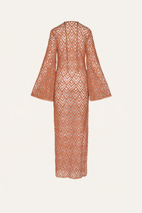 A floor-length dress in embroidered cotton, featuring wide, flowing sleeves. The geometric pattern adds texture and depth, while its straight silhouette moves with ease. Designed for versatile wear, it works effortlessly as a cover-up or styled for warm-weather gatherings. Size and Fit: True to size. Please refer to our size chart for detailed guidance. Product Details: Closure: Slip On Composition: 100% Cotton Fabrication: Embroidered Cotton Color: Nude Made in Colombia Dimensions: Length 37.40''