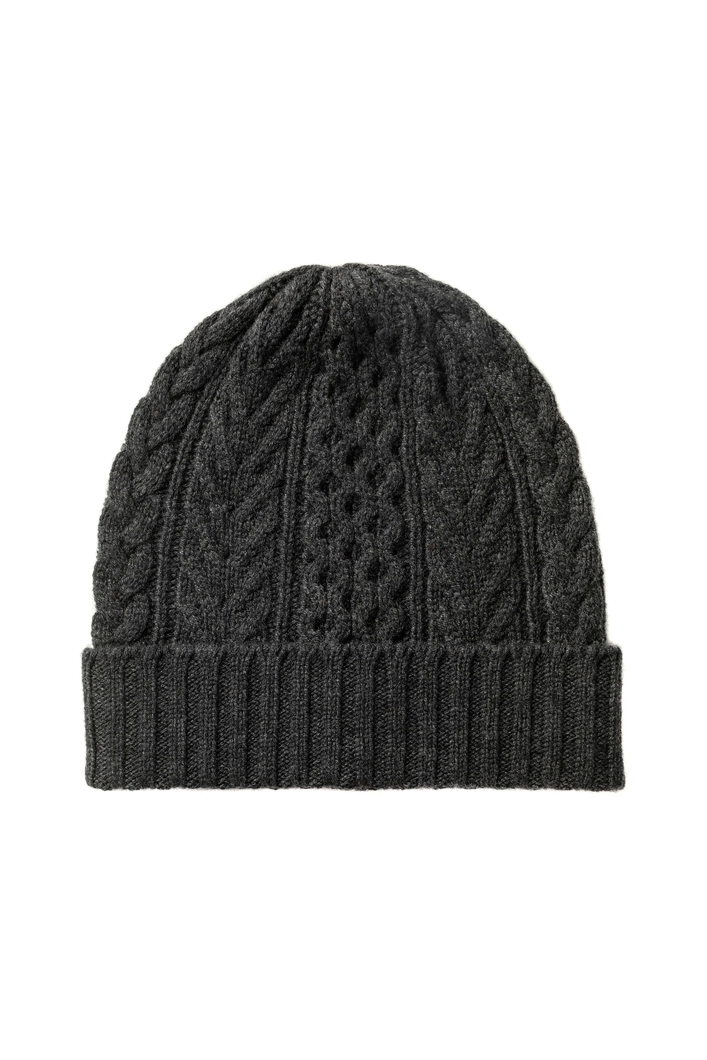 Stay warm this winter with our charcoal grey cable cashmere beanie. Made from super-soft cashmere fibres. Pair with our Aran Cable Cashmere Scarf for the perfect cold weather look. PRODUCT DETAILS 100% Cashmere One Size 2 Ply: Two individual strands are twisted to create this yarn, producing a durable, lightweight knit. One Size Made in Scotland Code: HAC03411