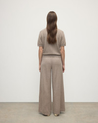 An oversized contour and wide leg keep things contemporary for our ash slouchy pants. Soft, lofty performance cashmere gives our slouch pants a premium next-to-skin feel and enough resistance to hold their shape. Featuring a low rise silhouette with internal pockets. Wear with our iconic cashmere hoodie for travel or lounging. PRODUCT DETAILS 97% Cashmere 3% Polyamide 2 Ply: Two individual strands are twisted to create this yarn, producing a durable, lightweight knit. Model is 5ft10 and wear a size S Made in Scotland Code: KBP00957