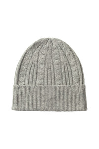 This slouchy fit beanie hat features a classic cable and rib pattern, accented by a slightly pointed crown - matching scarf available. PRODUCT DETAILS 100% Cashmere One Size 3 Ply: Three individual strands are twisted to create this yarn, producing a durable, lightweight knit. Made in Scotland Code: HAE03408