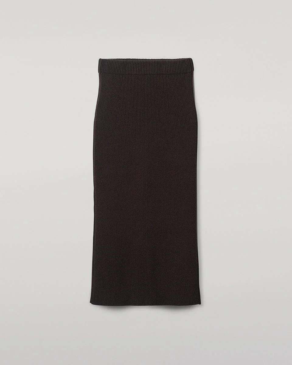 Fitted midi skirt in ribbed pure cashmere. Clean finish, maximum impact. Wear it with the coordinating tank top . PRODUCT DETAILS 97% Cashmere 3% Polyester 8 Ply: Eight individual strands are twisted to create this yarn, producing a durable, medium-thick knit. Model is 5ft10 and wear a size S Made in Scotland Code: KBC01032