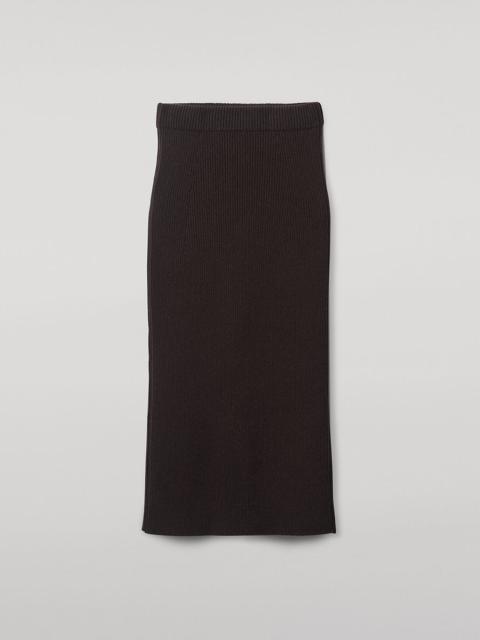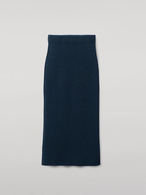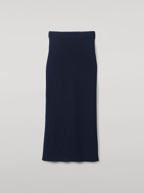 Fitted midi skirt in ribbed pure cashmere. Clean finish, maximum impact. Wear it with the coordinating tank top . PRODUCT DETAILS 97% Cashmere 3% Polyester 8 Ply: Eight individual strands are twisted to create this yarn, producing a durable, medium-thick knit. Model is 5ft10 and wear a size S Made in Scotland Code: KBC01032