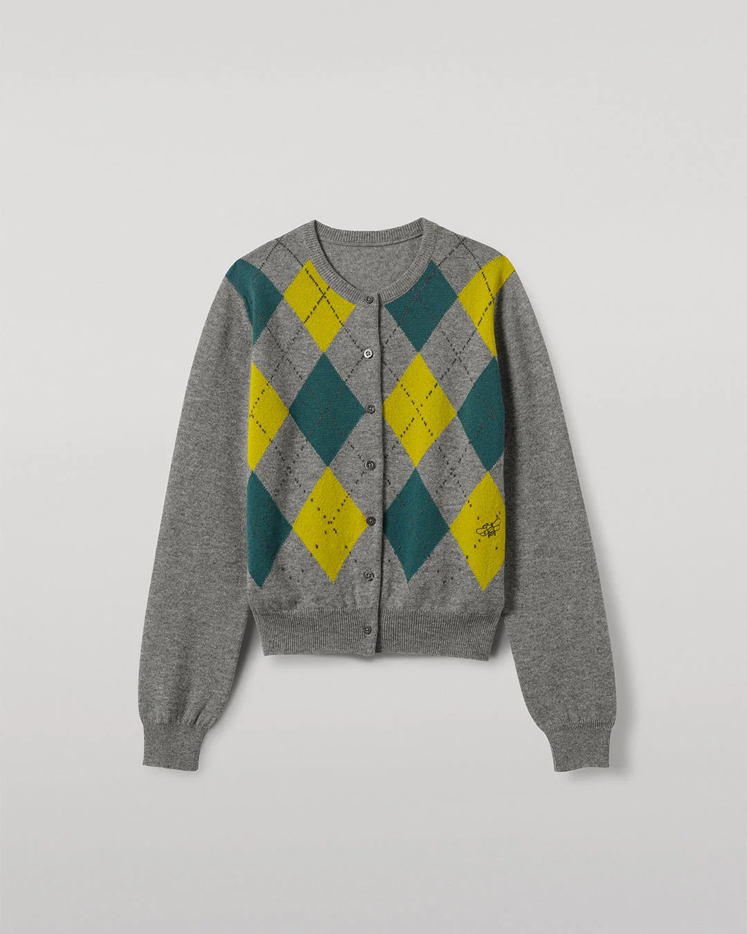 The Clan Argyle Cardigan is a classic crew design, featuring seven mother-of-pearl buttons to the front and a ribbed trim. Expertly crafted in our Hawick Mill from 100% fine cashmere, it has a traditional Argyle pattern, which has a fading irregular double-raker detail and an embroidered Johnston’s ‘bee’ motif to bottom left diamond. PRODUCT DETAILS • Regular Fit • 100% Cashmere • Storm Grey • Argyle Pattern • Mother-of-Pearl Buttons • Embroidered Bee Motif • 2-Ply Construction • Made In Scotland • Model is 5ft10 / 178cm and wears a S • KAP05731