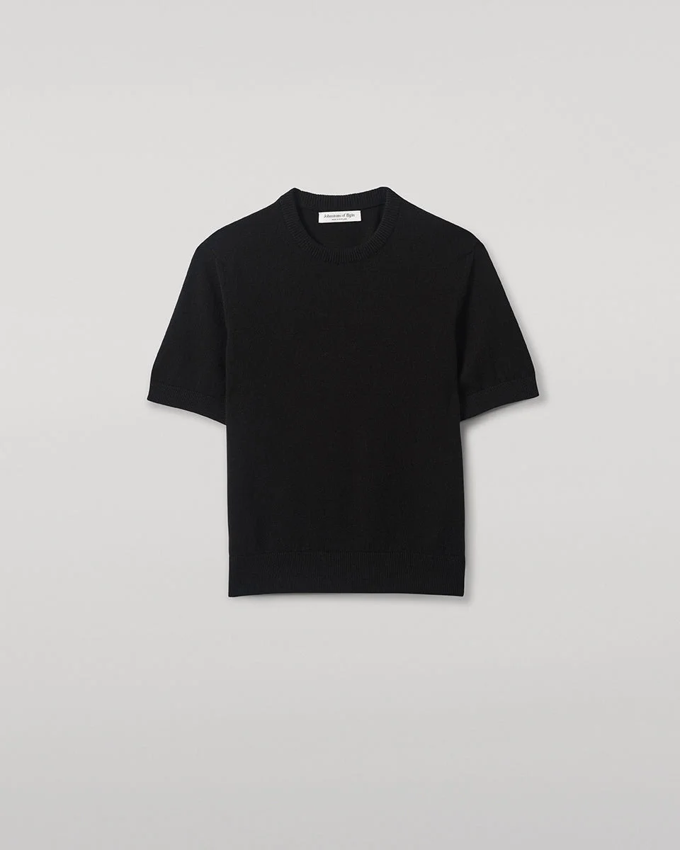 A modern short-sleeve silhouette in cashmere. Ideal for layering or worn alone. Light, soft, and redefined with traditional craftsmanship. PRODUCT DETAILS 100% Cashmere 2 Ply: Two individual strands are twisted to create this yarn, producing a durable, lightweight knit. Model is 5ft10 and wear a size S Made in Scotland Code: KAP05574