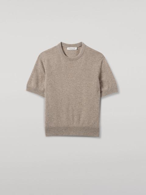 A modern short-sleeve silhouette in cashmere. Ideal for layering or worn alone. Light, soft, and redefined with traditional craftsmanship. PRODUCT DETAILS 100% Cashmere 2 Ply: Two individual strands are twisted to create this yarn, producing a durable, lightweight knit. Model is 5ft10 and wear a size S Made in Scotland Code: KAP05574