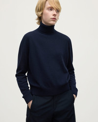 Classic Cashmere Navy Roll Neck Jumper