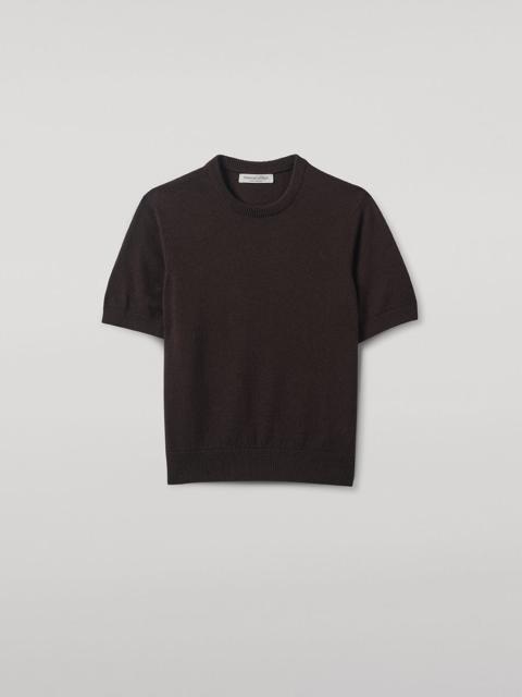 A modern short-sleeve silhouette in cashmere. Ideal for layering or worn alone. Light, soft, and redefined with traditional craftsmanship. PRODUCT DETAILS 100% Cashmere 2 Ply: Two individual strands are twisted to create this yarn, producing a durable, lightweight knit. Model is 5ft10 and wear a size S Made in Scotland Code: KAP05574