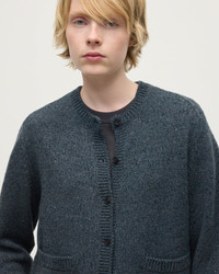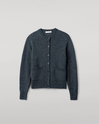 Playful Donegal cardigan with a high neck and patch pockets. Crafted in our Elgin mill. Donegal knitwear is crafted using multi-tonal yarns, spun with flecks of contrasting colour to create a beautifully mottled, heathered effect. At Johnstons of Elgin, we dye and spin our own Cashmere Donegal yarn, combining carefully selected hues from our seasonal palette. We then twist in complementary colours to create marls that are exclusive to us. PRODUCT DETAILS 100% Cashmere Model is 5ft10 and wear a size S Made in Scotland Code: KAC05494