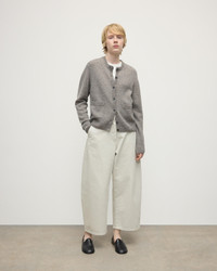 Playful Donegal cardigan with a high neck and patch pockets. Crafted in our Elgin mill. Donegal knitwear is crafted using multi-tonal yarns, spun with flecks of contrasting colour to create a beautifully mottled, heathered effect. At Johnstons of Elgin, we dye and spin our own Cashmere Donegal yarn, combining carefully selected hues from our seasonal palette. We then twist in complementary colours to create marls that are exclusive to us. PRODUCT DETAILS 100% Cashmere Model is 5ft10 and wear a size S Made in Scotland Code: KAC05494