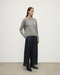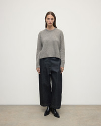 Textural Donegal cashmere crewneck. Spun in-house with hand-sprinkled neps for a one-of-a-kind finish. Donegal knitwear is crafted using multi-tonal yarns, spun with flecks of contrasting colour to create a beautifully mottled, heathered effect. At Johnstons of Elgin, we dye and spin our own Cashmere Donegal yarn, combining carefully selected hues from our seasonal palette. We then twist in complementary colours to create marls that are exclusive to us. PRODUCT DETAILS 100% Cashmere Model is 5ft10 and wear a size S Made in Scotland Code: KAC05289
