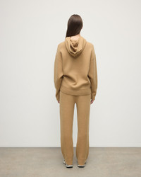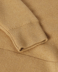 Camel & Natural: Bonded cashmere and merino layers with Lycra for stretch. A refined approach to casualwear. Wear with matching joggers. PRODUCT DETAILS 65% Cashmere 27% Merino Wool 8% Elastane 4 Ply: Four individual strands are twisted to create this yarn, producing a durable, light-mid knit. Oversized Fit Made in Scotland Code: KBA01034