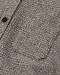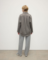 A relaxed, dropped shoulder shirt in an equal blend of luxe fibres. We combine melange lambswool, spun in our own mill, with cashmere Donegal for a super soft handle. A back pleat and curved hem add interest. Finished with patch pocket detail. Features an archive inspired Glen Urquhart Check pattern. PRODUCT DETAILS 50% Cashmere 50% Wool Ash Small Glen Urquhart Check Model is 5ft10 and wear a size S Oversized Fit • Oversized shirt style based on a classic men’s shirt detailing to give a “boyfriend” look. • Single breast patch pocket • Single button cuffs to be worn open or closed. • Classic shirt details with a back yoke and central back pleat with curved hem. • Dropped shoulder gives relaxed feel and fit. • Light enough to wear in replace of a cardigan and warm enough as a light outerwear piece. • Buffalo Horn buttons, top and cuff buttons branded • Drop shoulder. Made in Scotland Code: TB000754