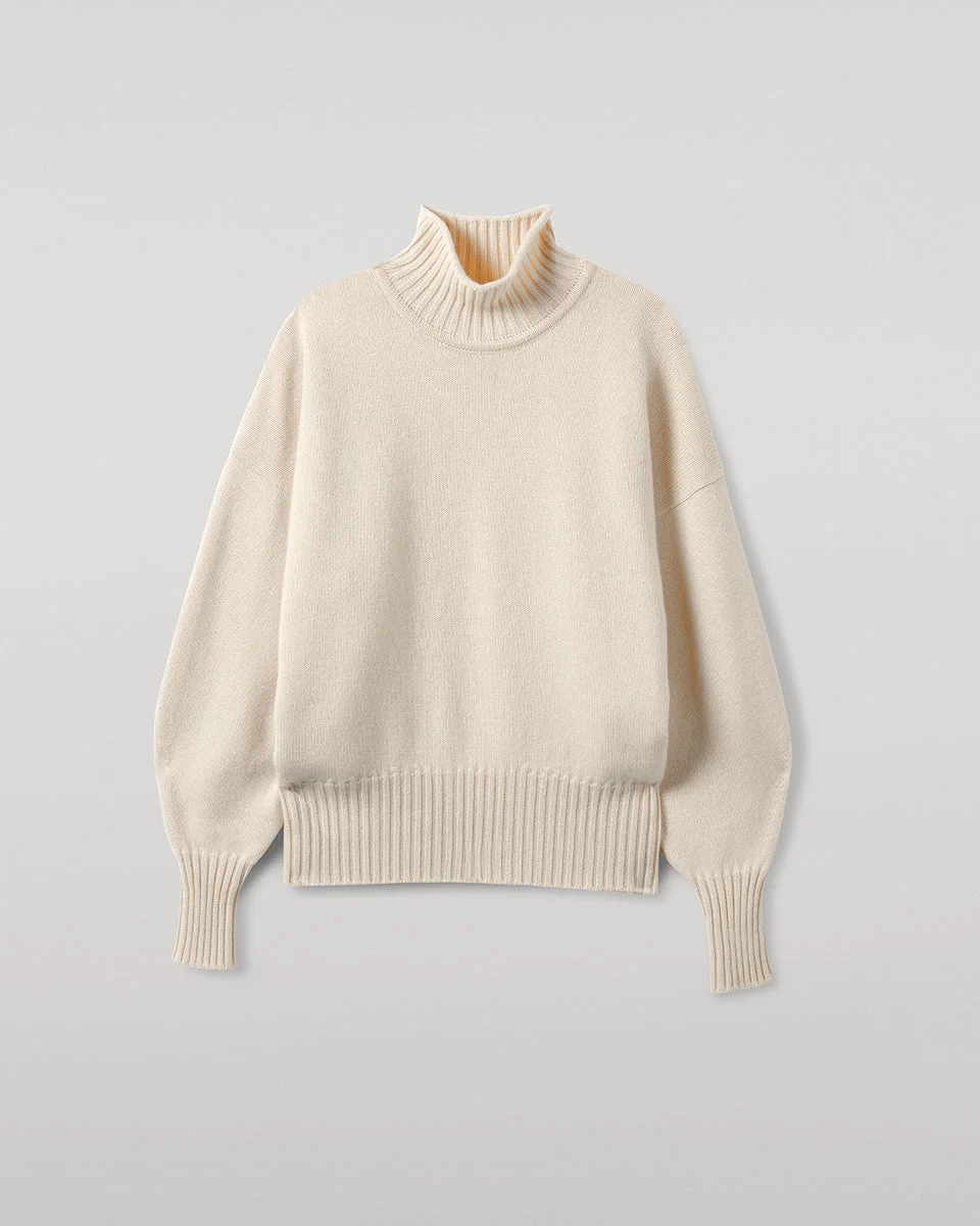 High Neck Cream Cashmere Jumper