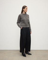 Cardigan-stitched Donegal cashmere with subtle ribbing. A refined seasonal layer. Donegal knitwear is crafted using multi-tonal yarns, spun with flecks of contrasting colour to create a beautifully mottled, heathered effect. At Johnstons of Elgin, we dye and spin our own Cashmere Donegal yarn, combining carefully selected hues from our seasonal palette. We then twist in complementary colours to create marls that are exclusive to us. PRODUCT DETAILS 100% Cashmere Peregrine Donegal & Molasses Model is 5ft10 and wear a size S Made in Scotland Code: KAC05590