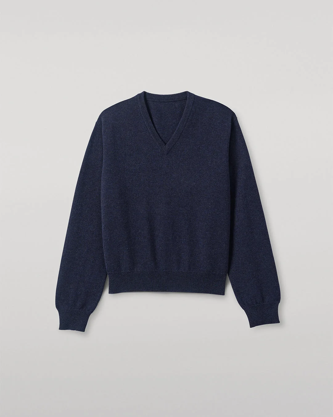 Contemporary classic high ‘V’ neck sweater with an easy relaxed shape. Crafted in the finest woollen-spun cashmere and tightly knitted for an authentic Scottish hand feel, this lightweight trans-seasonal piece is a timeless investment. PRODUCT DETAILS 100% Cashmere in Barra Navy 2 Ply: Two individual strands are twisted to create this yarn, producing a durable, lightweight knit. Model is 5ft11 / 180cm and wears a size S Made in Scotland Code: KAP05784