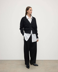 Structured cardigan in Milano stitch cashmere. Ribbed trims and clean lines for modern simplicity. Milano stitch is a tightly constructed double-knit technique that produces a smooth, dense, and structured fabric. Unlike looser or more open knits, it offers exceptional shape retention, minimal stretch, and a clean, tailored finish—making it ideal for more formal or refined knitwear pieces. At Johnstons of Elgin, we use the Milano stitch to elevate our Cashmere styles, giving them a more polished appearance and a substantial feel, perfect for cooler seasons. PRODUCT DETAILS 100% Cashmere 2 Ply: Two individual strands are twisted to create this yarn, producing a durable, lightweight knit. Model is 5ft10 and wear a size S Made in Scotland Code: KAP05489
