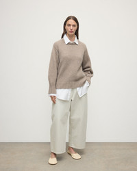 Heavyweight crewneck in pure 12ply cashmere. A relaxed boyfriend style fit with exaggerated sleeves, and a stepped hem for a modern silhouette. PRODUCT DETAILS 100% Cashmere 12 Ply: Twelve individual strands are twisted to create this yarn, producing a durable, thicker knit. Model is 5ft10 and wear a size S Oversized and generous – a truly luxurious feeling wrapping so much cashmere round the body. Made in Scotland Code: KAB05562