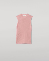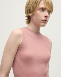 Sleeveless, high-neck tank in superfine cashmere. Clean lines and a modern cut in a warm camel hue. Style it alone or with the coordinating cardigan . PRODUCT DETAILS 100% Superfine Cashmere 3 Ply: Three individual strands are twisted to create this yarn, producing a durable, lightweight knit. Model is 5ft10 and wear a size S Made in Scotland Code: KAI05559