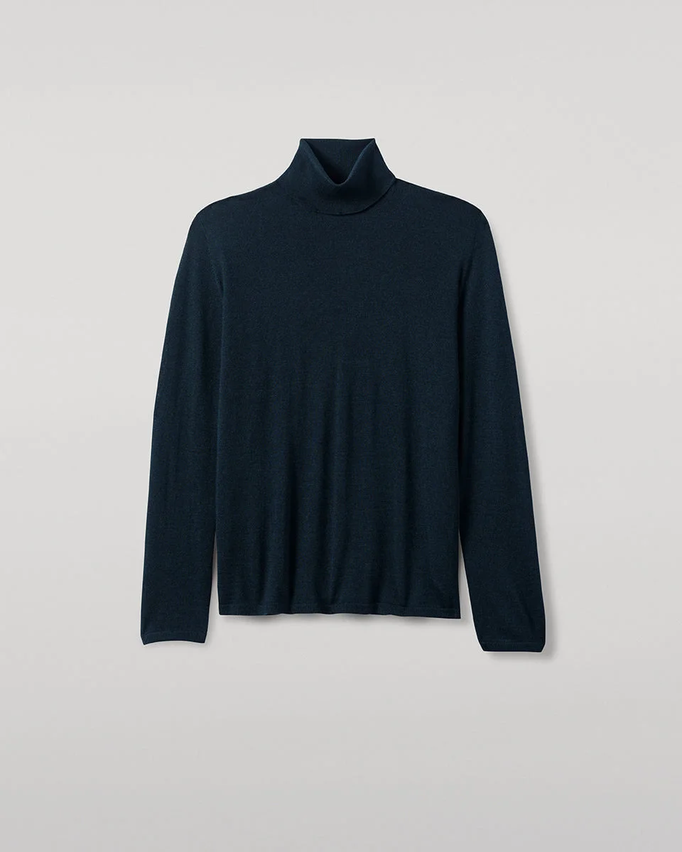 A clean, minimal roll neck in superfine cashmere. Soft, breathable and perfect for layering. Designed with subtle structure. PRODUCT DETAILS 100% Cashmere 3 Ply: Three individual strands are twisted to create this yarn, producing a durable, lightweight knit. Model is 5ft10 and wear a size S Made in Scotland Code: KAI05607