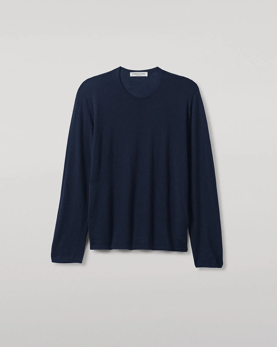 This relaxed jersey piece is made with incredibly lightweight superfine cashmere. A loose hem finishes the look. Just like your favourite cotton long sleeve tee but with all the luxury of Cashmere. This easy-fit, seamless design is the perfect travel companion, creasing less than cotton or linen when you pack it away. PRODUCT DETAILS 100% Superfine Cashmere 3 Ply: Three individual strands are twisted to create this yarn, producing a durable, lightweight knit. Model is 5ft10 and wear a size S Made in Scotland Code: KAI05318