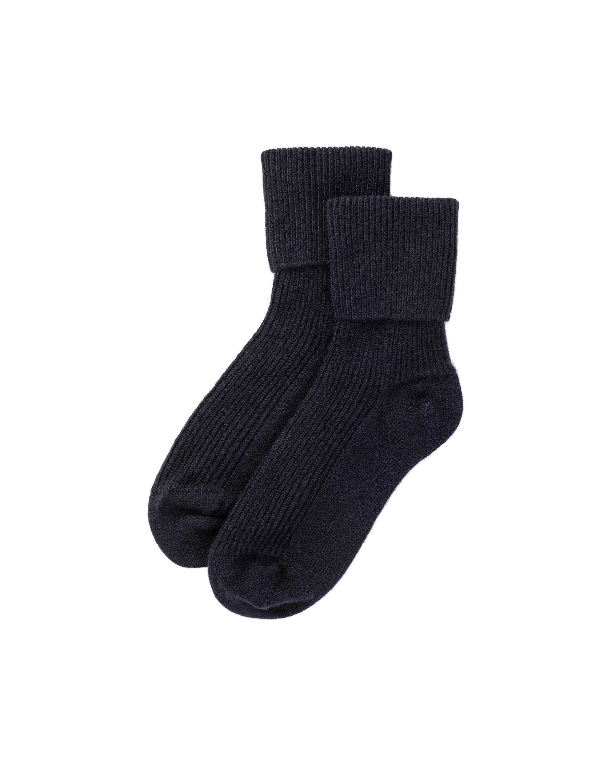 Experience unparalleled indulgence and comfort with our Dark Navy cashmere socks. Crafted from the highest-grade cashmere, our socks are ideal for lounging and bedtime. Please refrain from pairing them with footwear, as it may harm the fragile fibres. PRODUCT DETAILS 100% Cashmere One Size | UK4-7 | 37-41 EU 2 Ply: Two individual strands are twisted to create this yarn, producing a durable, lightweight knit. Made in Scotland Code: HAG02565
