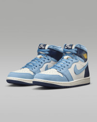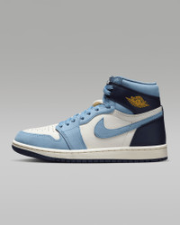 This iteration of the AJ1 reimagines Mike's first signature model with a fresh mix of colors. Premium materials, soft cushioning and a padded ankle collar offer total support and celebrate the shoe that started it all. Benefits - Premium construction delivers comfort and iconic appeal. - Encapsulated Nike Air-Sole unit in the heel gives you soft cushioning. Product Details - Shown: University Blue/Sail/Midnight Navy/University Gold - Style: FD2596-400