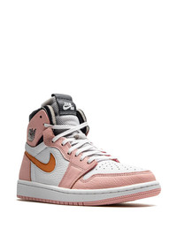 Air Jordan 1 High Zoom CM "Pink Glaze" sneakers The ever-popular Jordan 1 High Zoon silhouette is presented here in a pink glazer and cauliflower colourway for a crisp feel. The signature Air soles provide cushioning, whilst premium leather uppers ensure a classic style. It's the pair that your collection has been waiting for. Highlights - Pink glaze/cauliflower - Leather - Round toe - Flat rubber sole - Front lace-up fastening - Branded insole - Signature swoosh logo detail - These styles are supplied by a premium sneaker marketplace. stocking only the most sought-after footwear, they source and curate some of the most hard to find sneakers from around the world. Imported Composition Leather 100% SIZE & FIT FittingInformation This piece fits small – take one size up