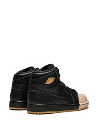 Air Jordan 1 Retro High P sneakers As part of the Air Jordan 1 ”Dipped Pack”, this Air Jordan 1 for women comes in a black colorway which was dipped in a Vachetta Tan color, further metallic gold accents can be found on the logos. The black leather upper is made of a treated leather that shines when the light hits the shoe. Also featuring a lace-up front fastening, a round toe and a flat rubber sole. These styles are supplied by a premium sneaker marketplace. Stocking only the most sought-after footwear, they source and curate some of the most hard to find sneakers from around the world. Imported Composition Outer: Calf Leather 100% Sole: Rubber 100% Lining: Polyester 100% SIZE & FIT Measurement HEEL 1.18 in(3 cm) Sole height 0.78 in(2 cm) HEIGHT 3.93 in(10 cm)