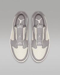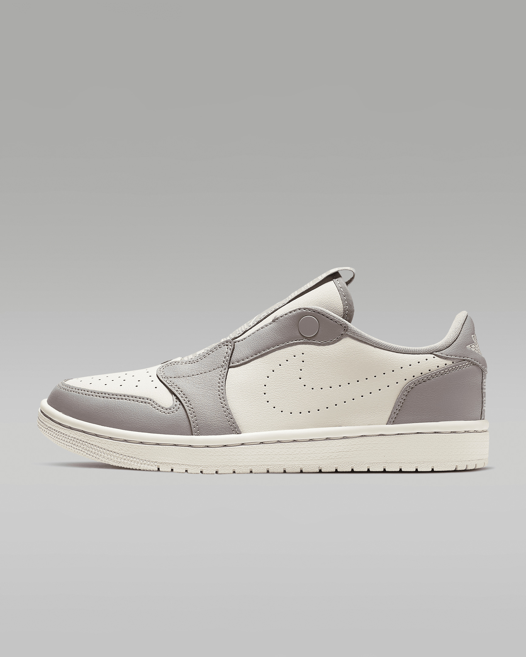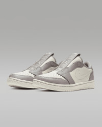 Slip on a legend with the Air Jordan 1 Retro Low Slip. Its laceless design has an easy snap-button closure, while a lightweight foam midsole with an Air-Sole unit gives you that all-day comfort on the go. Benefits - Laceless design has a button-snap tongue for easy on and off. - Encapsulated Air-Sole unit in the heel enhances cushioning. - Elongated tongue label is inspired by the original Air Jordan. - Foam midsole gives you a cushioned ride. - Solid rubber outsole provides durability and traction. Product Details - Shown: Atmosphere Grey/Pale Ivory/Pale Ivory - Style: AV3918-005