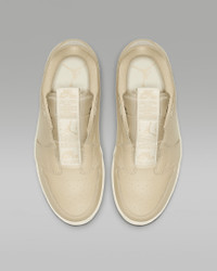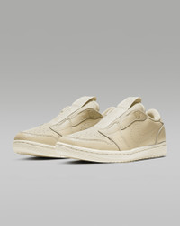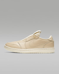 Slip on a legend with the Air Jordan 1 Retro Low Slip. Its laceless design has an easy snap-button closure, while a lightweight foam midsole with an Air-Sole unit gives you that all-day comfort on the go. Benefits - Laceless design has a button-snap tongue for easy on and off. - Encapsulated Air-Sole unit in the heel enhances cushioning. - Elongated tongue label is inspired by the original Air Jordan. - Foam midsole gives you a cushioned ride. - Solid rubber outsole provides durability and traction. Product Details - Shown: Desert Ore/Light Cream - Style: AV3918-200