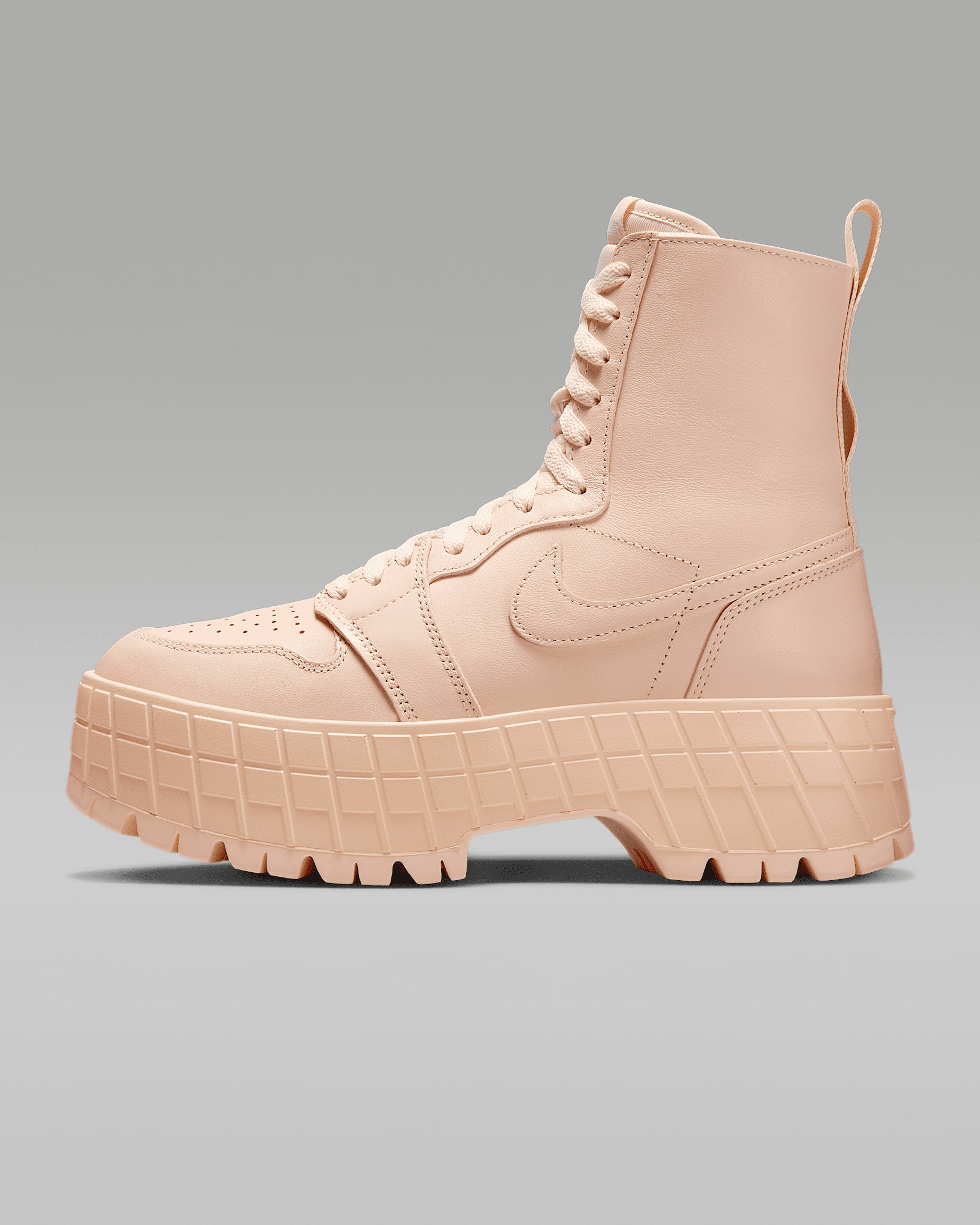 (Flight) suited and booted. This bold, rugged sneaker boot is key for your rotation. Luxe full-grain leather combines with a chunky platform sole to pump up your personal style. Exaggerated outsole lugs and Nike Air cushioning support your steps. And don't sleep on the AJ1 DNA: a diamond inset on the heel displays Jumpman insignia, grounding your look in hoops heritage. More Benefits - Nike Air in the heel cushions every step. - Perforated toe box lets your foot breathe. - Elevated outsole adds height and extra comfort. Product Details - Shown: Guava Ice/Guava Ice/Sail - Style: FJ5737-800