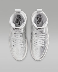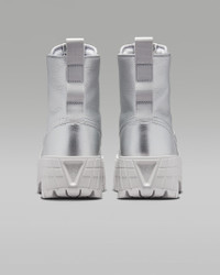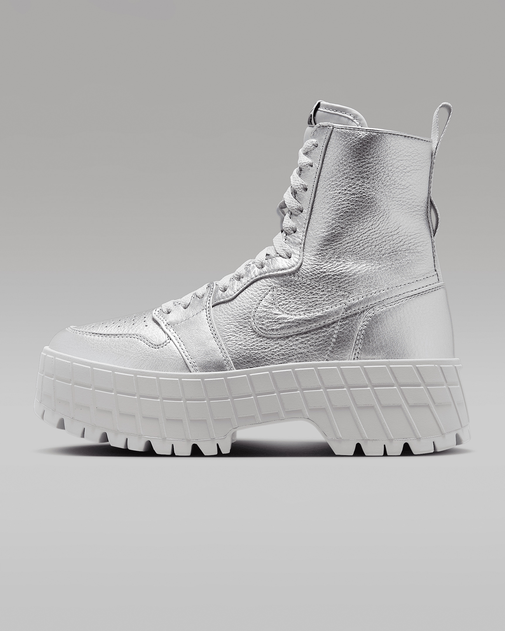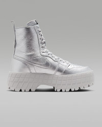 (Flight) suited and booted. This bold, rugged sneaker boot is key for your rotation. Luxe full-grain leather combines with a chunky platform sole to pump up your personal style. Exaggerated outsole lugs and Nike Air cushioning support your steps. And don't sleep on the AJ1 DNA: a diamond inset on the heel displays Jumpman insignia, grounding your look in hoops heritage. More Benefits - Nike Air in the heel cushions every step. - Perforated toe box lets your foot breathe. - Elevated outsole adds height and extra comfort. Product Details - Shown: Metallic Silver/Metallic Silver/Neutral Grey - Style: FJ5737-002