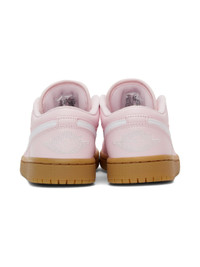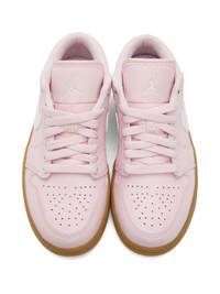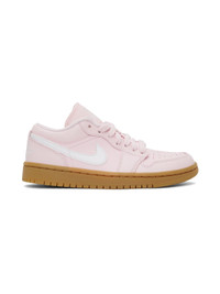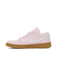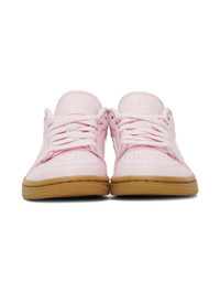 Low-top grained leather and suede sneakers in pink. Perforated detailing at round toe. Tonal lace-up closure. Logo embroidered in white at tonal textile padded tongue. Padded collar. Swoosh appliqué in white at sides. Logo embroidered in white at heel. Treaded rubber sole in tan. Supplier color: Arctic pink/White Upper: leather. Sole: rubber.