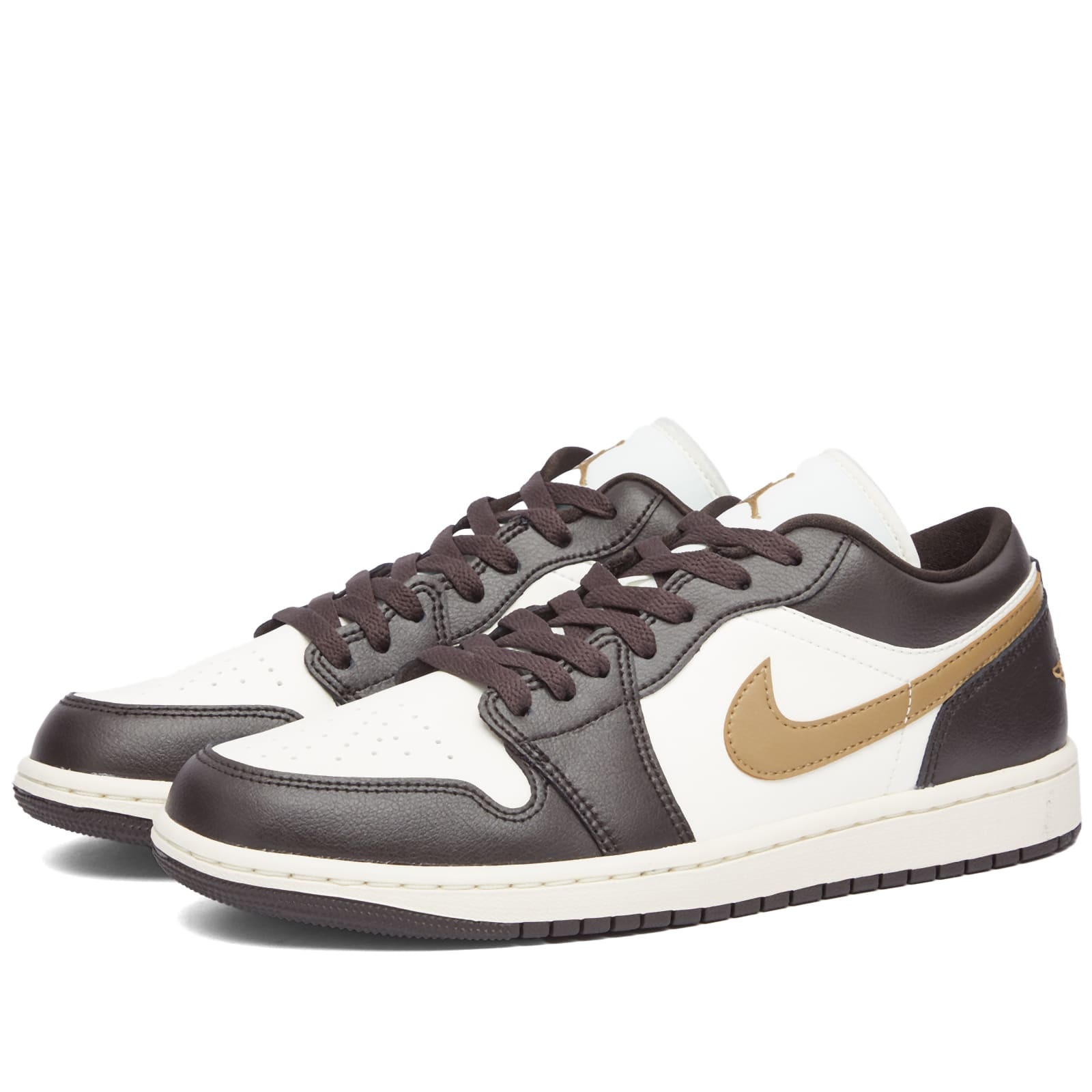 Signing a deal to make a signature sneaker in 1984, the basketball shoe craze was kickstarted when Nike created the Air Jordan line for an NBA rookie going by the name of Michael Jordan. The brand’s first ever b-ball shoe, this sneaker is designed with a smooth leather upper. With brown leather overlays offering contrast detailing on the toe cap, eye stay panel and heel counter. On the medial and lateral sides of the shoe, the label’s signature Swoosh detailing undergoes the same treatment. On the heel the Jordan wings logo is stamped onto the heel tabs. Finished with a yellowed outsole to round out the vintage aesthetic of these trainers. - Leather Uppers - Leather Overlays - Lace Closure - Rubber Outsole - Style Code: DC0774-200