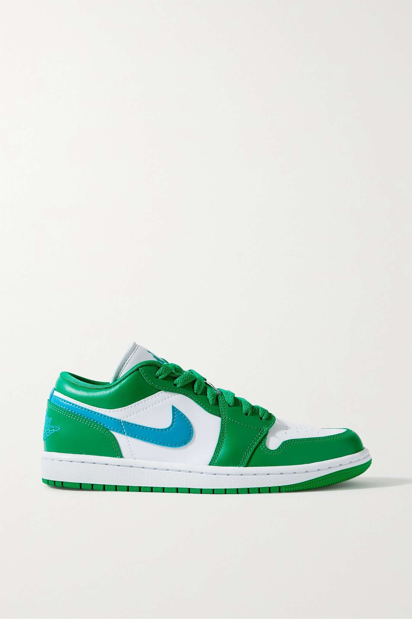 EDITORS'NOTES Nike updates its iconic 'Air Jordan 1' sneakers this season in a vibrant white, green and teal colorway. They're made from smooth leather and have perforated toes. A star motif is carved into the rubber soles for traction. SIZE & FIT Nike follows its own size guide, please refer to below: - US 5 = UK 2.5/ EU 35.5 - US 5.5 = UK 3/ EU 36 - US 6 = UK 3.5/ EU 36.5 - US 6.5 = UK 4/ EU 37.5 - US 7 = UK 4.5/ EU 38 - US 7.5 = UK 5/ EU 38.5 - US 8 = UK 5.5/ EU 39 - US 8.5 = UK 6/ EU 40 - US 9 = UK 6.5/ EU 40.5 - US 9.5 = UK 7/ EU 41 - US 10 = UK 7.5/ EU 42 - US 10.5 = UK 8/ EU 42.5 - US 11 = UK 8.5/ EU 43 - US 11.5 = UK 9/ EU 44 - US 12 = UK 9.5/ EU 44.5 - Fits true to size, take your normal size DETAILS & CARE - Rubber sole measures approximately 30mm/ 1 inch - Green, teal and white leather - Lace-up front - Nike follows its own size guide, therefore the size stated on the box will differ from the one provided in our size chart. To receive your correct fit, please refer to Size & Fit notes