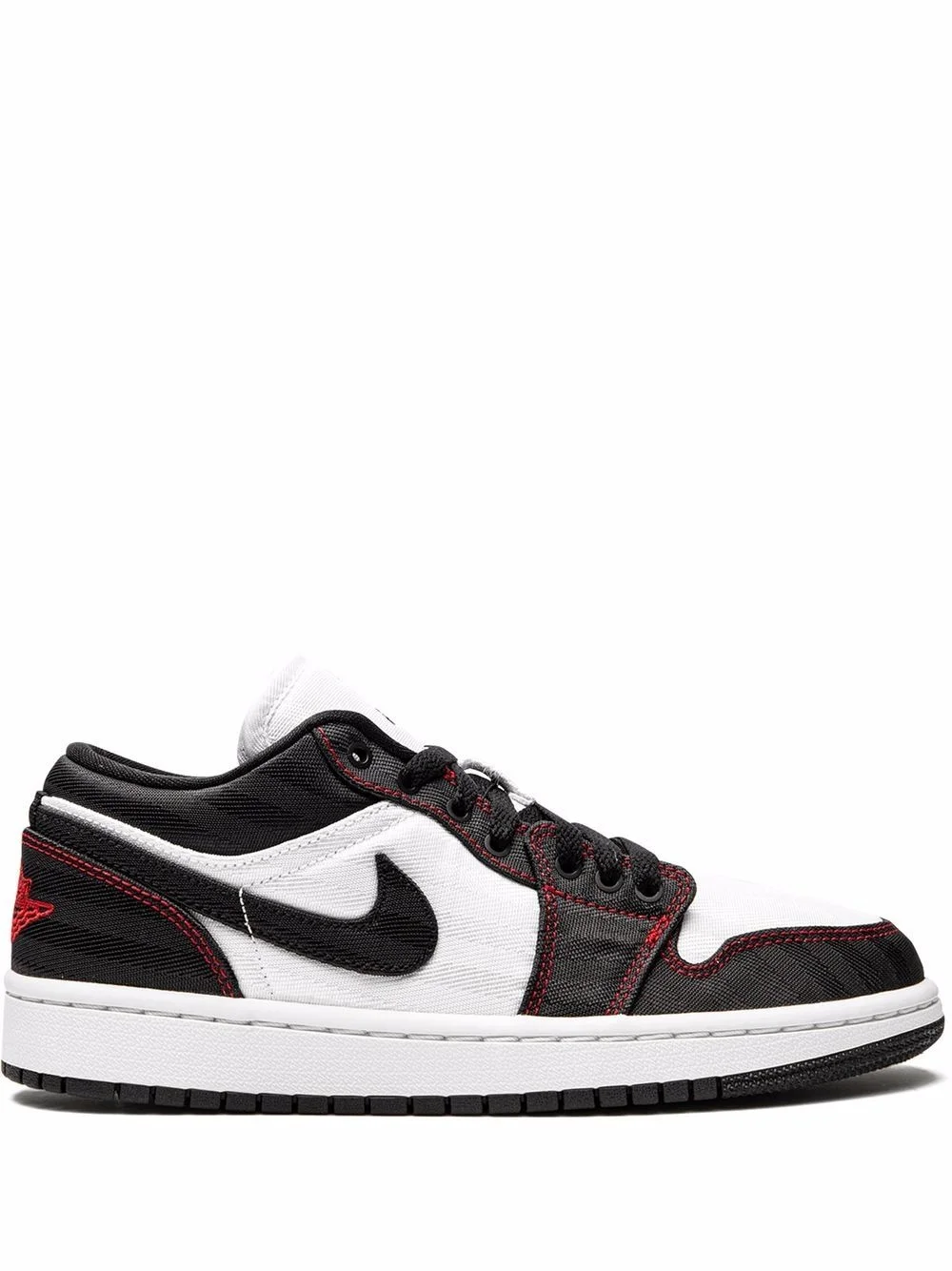 Air Jordan 1 Low Utility “White/Black/Red” sneakers Iconic and retro, the Air Jordan 1 is one of the most notable sneakers of all time. This version of Michael Jordan's signature silhouette channels a new colourway, consisting of contrasting black, gym red and white panels for a timeless touch. Highlights - White/black/gym red - Leather - Panelled design - Branded insole - Signature swoosh logo detail - Flat rubber sole - Front lace-up fastening - Perforated toebox - These styles are supplied by a premium sneaker marketplace. stocking only the most sought-after footwear, they source and curate some of the most hard to find sneakers from around the world. Imported Composition Outer: Canvas 100% Sole: Rubber 100% Lining: Fabric 100%