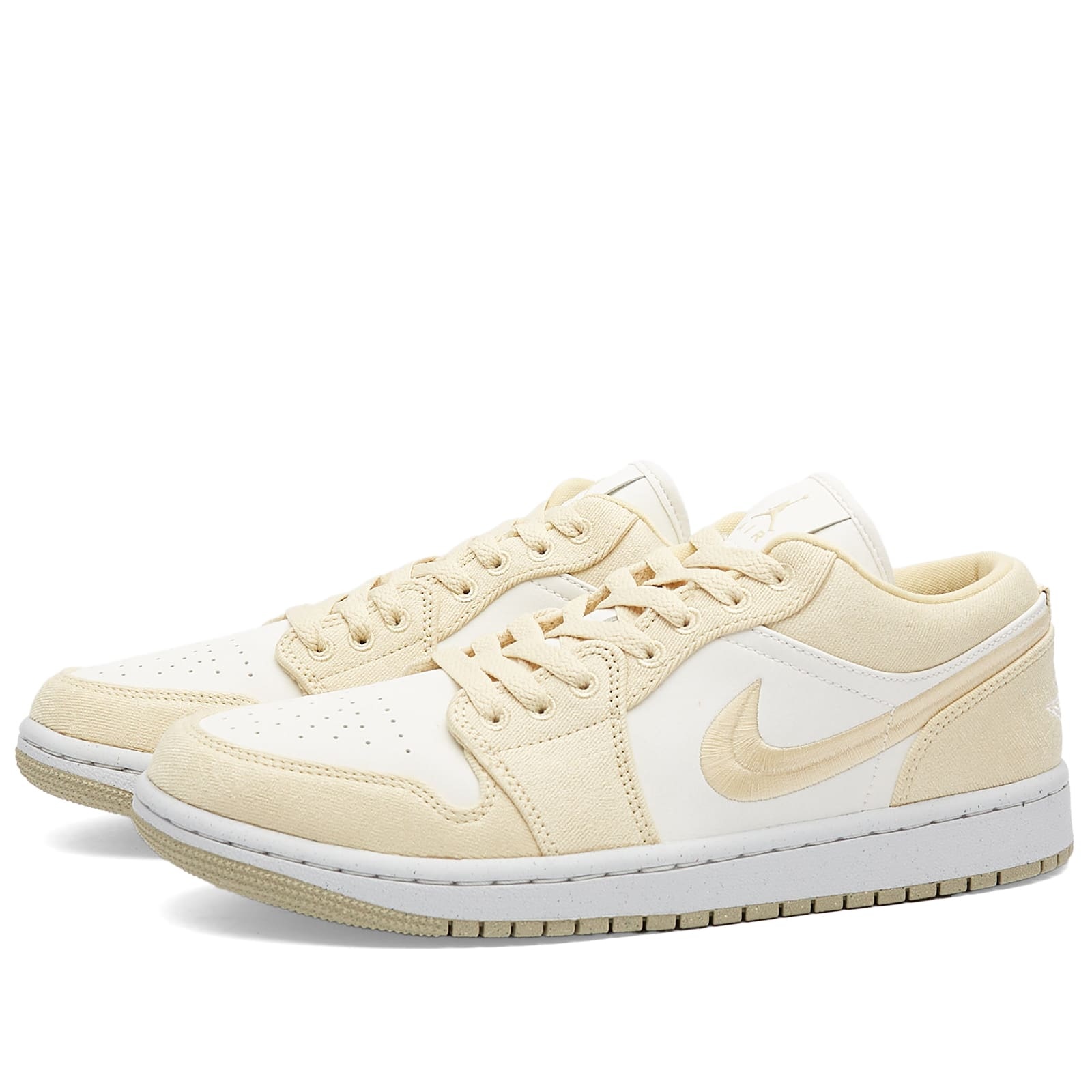 Michael Jordan’s first signature silhouette, the Air Jordan 1 Low basketball sneaker, is back and more golden than ever before. The iconic low-profile features smooth synthetic leather dressing the base, complete with a golden Swoosh sweeping across the sidewalls. Textile overlays give the design a textural, statement finish, signed off with that all-important golden Jumpman insignia at the heel. A classic two-tone outsole completes the coveted design. - Synthetic Leather & Textile Upper - Encapsulated AIR Cushioning - Rubber Outsole