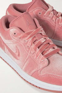 EDITORS'NOTES These Nike 'Air Jordan 1 Low' sneakers will make an especially cool addition to your existing collection. They're made from blush velvet - even down to the laces - for a plush, textural finish. Wear yours with slouchy jeans or cargo pants to balance the feminine feel. SIZE & FIT Nike follows its own size guide, please refer to below: - US 5 = UK 2.5/ EU 35.5 - US 5.5 = UK 3/ EU 36 - US 6 = UK 3.5/ EU 36.5 - US 6.5 = UK 4/ EU 37.5 - US 7 = UK 4.5/ EU 38 - US 7.5 = UK 5/ EU 38.5 - US 8 = UK 5.5/ EU 39 - US 8.5 = UK 6/ EU 40 - US 9 = UK 6.5/ EU 40.5 - US 9.5 = UK 7/ EU 41 - US 10 = UK 7.5/ EU 42 - US 10.5 = UK 8/ EU 42.5 - US 11 = UK 8.5/ EU 43 - US 11.5 = UK 9/ EU 44 - US 12 = UK 9.5/ EU 44.5 - Fits true to size, take your normal size DETAILS & CARE - Rubber sole measures approximately 20mm/ 1 inch - Blush velvet - Lace-up front - Designer color: Rust Pink/ White - Nike follows its own size guide, therefore the size stated on the box will differ from the one provided in our size chart. To receive your correct fit, please refer to Size & Fit notes