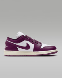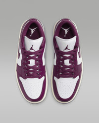 Always in, always fresh. The Air Jordan 1 Low sets you up with a piece of Jordan history and heritage that's comfortable all day. Choose your colors, then step out in the iconic profile that's built with a high-end mix of materials and encapsulated Air in the heel. Product Details - Wings logo on the heel - Stitched Swoosh design - Perforated toe - Foam midsole - Rubber traction - Shown: White/Sail/Bordeaux - Style: DC0774-161